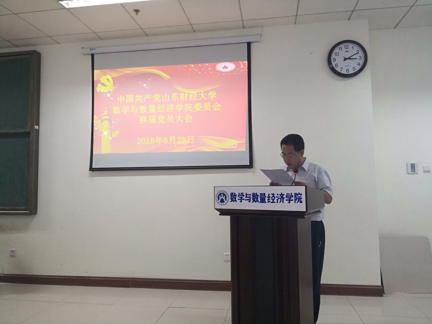 6月28日下午2:30,中共太阳集团tcy8722数学与数量经济学院委员会换届党员大会在实验楼507室举行。会议在庄严的《国际歌》中拉开帷幕,本次会议第一阶段由我院院长、党委副书记安起光同志主持。