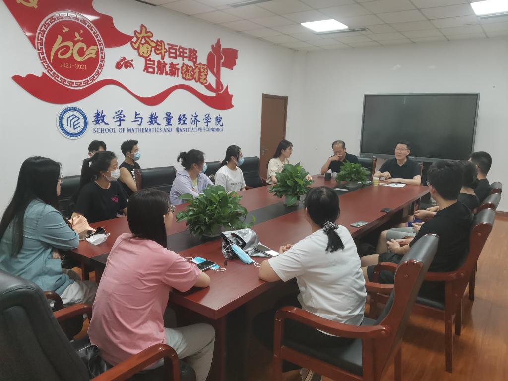 6月6日下午,2022届毕业生就业工作专题座谈会于舜耕校区学院第一会议室召开。院党委书记李玉成、党委副书记杨德嵋、毕业班辅导员王京姝以及金融数学、数学与应用数学专业毕业生代表参加了此次会议。
