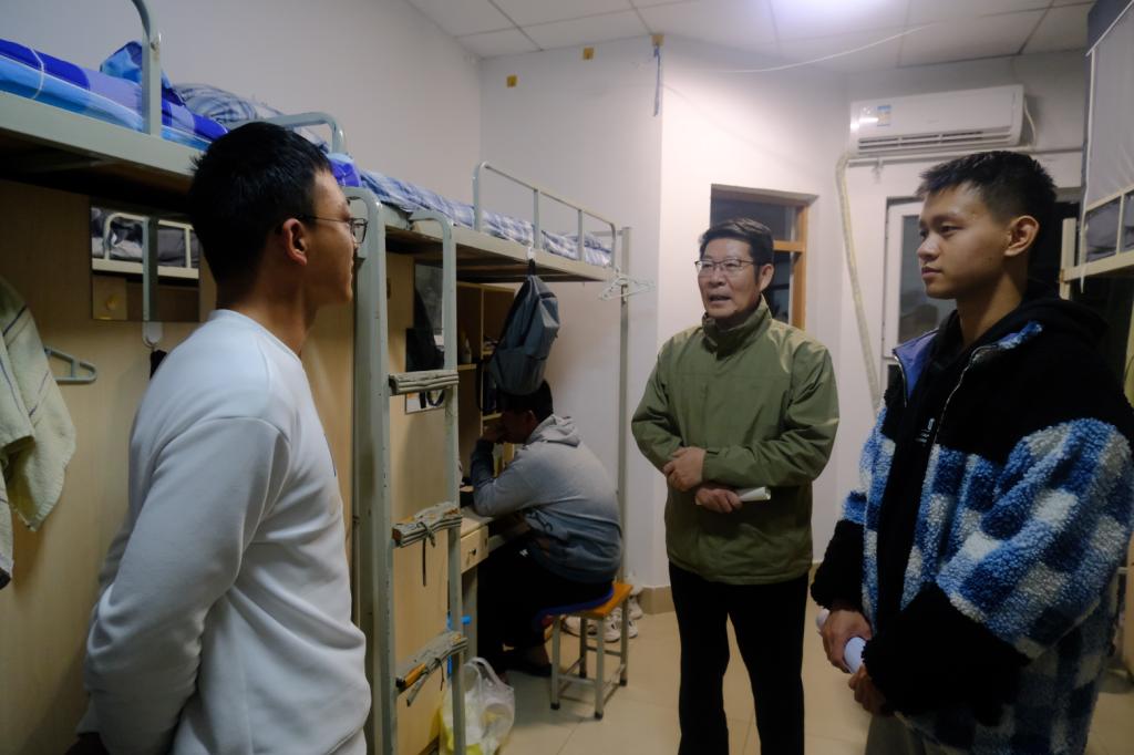 在走访学生宿舍过程中,李玉成与同学们亲切交流,详细了解了新生的学习生活状态和适应情况,耐心倾听同学们的困扰并设身处地进行心理疏导。他勉励同学们要及时调整状态,尽快转变角色,适应大学学习生活节奏,努力提高自身专业水平和综合素养,并叮嘱同学们要严格遵守校规校纪,提高安全意识,注意防火、防盗、防诈骗,确保宿舍安全稳定。