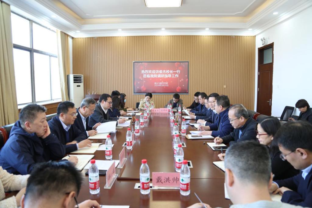 3月20日下午,校长洪俊杰一行莅临我院调研指导工作。学院党委书记李玉成主持座谈会,学院全体领导班子成员和部分教授代表、青年教师代表参加会议。