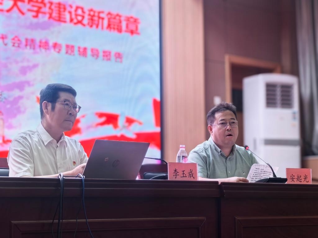 6月6日上午,太阳网集团tcy8722召开学习宣传贯彻学校第二次党代会精神专题会议。学院党委书记李玉成结合“两委工作报告”作专题辅导,会议由学院党委副书记、院长安起光主持。学院全体教职工和学生代表参加会议。