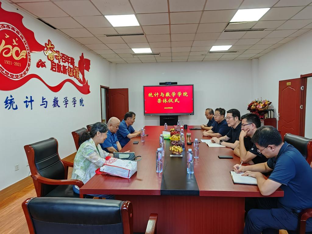 学院党委书记李玉成首先代表学院领导班子及全体师生,向荣休的各位老师们致以最诚挚的感谢和崇高的敬意!他说,第40个教师节即将到来,在这个特殊的日子里,我们更加深刻地感受到以三位老师为代表的教育工作者的伟大与自豪。“桃李不言,下自成蹊”,虽然有几位荣休教师在外地不能返回济南参加荣休仪式,但以三位老师为代表的荣休教师,他们不仅是文化知识的传播者,更是人类灵魂的工程师,三十多年如一日用爱与智慧点亮了一代又一代学生的心灵,为学院全体教师做出了表率,为财大高质量发展作出了卓越贡献,为国家和社会各行各业培养了大量优秀人才,可谓是桃李满天下,是我们学习的榜样,是弘扬和践行新时代教育家精神的楷模。他希望荣休教师们要一如既往地关心和支持学院的改革与发展,多提宝贵意见建议,继续携手共创统数美好明天。