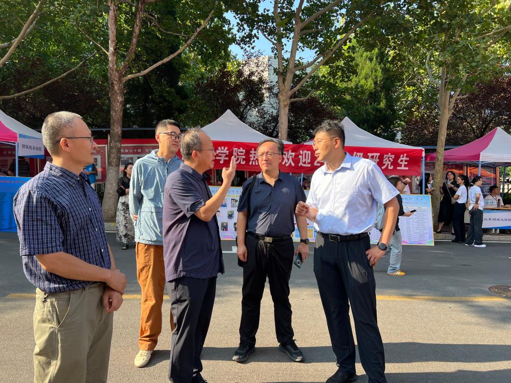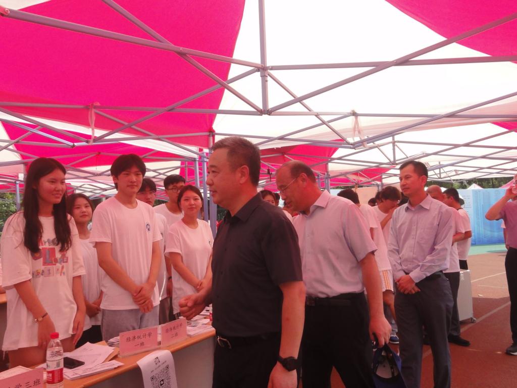 31日上午,校党委书记查玉喜和其他校领导在相关职能部门负责人的陪同下来到学院迎新现场看望全国各地新同学,亲切慰问迎新工作人员和志愿者,对我院在迎新工作中所做的精心准备给予充分肯定。在与新生及家长的交谈中,详细询问了他们对大学生活的期待与疑惑,并勉励新同学尽快适应大学生活,树立远大目标,努力学习、历练本领,为实现中国式现代化贡献力量。在宣传展板前,查玉喜等校领导与学院师生合影留念。