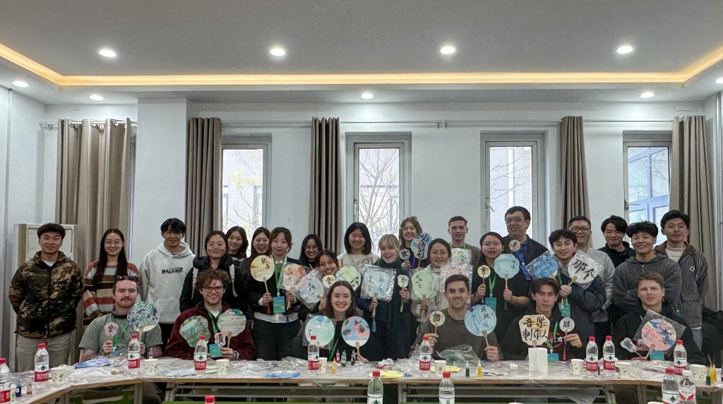 研学团首先参观了我校图书馆,了解图书馆数字化的硬件平台、资源平台和服务平台,参观智能书架、图书自助借还机、电子书借阅机、瀑布流、歌德阅读机等设施,并在朗读亭内进行体验。在图书馆老师的带领和讲解下领略《论语》《四库全书》等中华典籍历史文化和博大精深,充分感受中国传统文化的深厚底蕴。接着,研学团参观了我院学生宿舍,了解彼此日常生活细节,分享校园趣事。在志愿者的带领下研学团来到大学生文化活动中心,欣赏我院学子太极拳、八段锦等中国传统体育项目表演,并在志愿者的指导下亲身体验基本招式和经典动作,在舒缓悠扬的音乐和行云流水的动作中感受中华武术的独特魅力。我院志愿者为澳洲研学团精心准备了漆扇与书法体验活动,同学们融合传统漆扇工艺与个人创意合作完成了独具特色、意境悠远的作品,中外学生共同领略了中国传统文化的多彩魅力和历史传承。