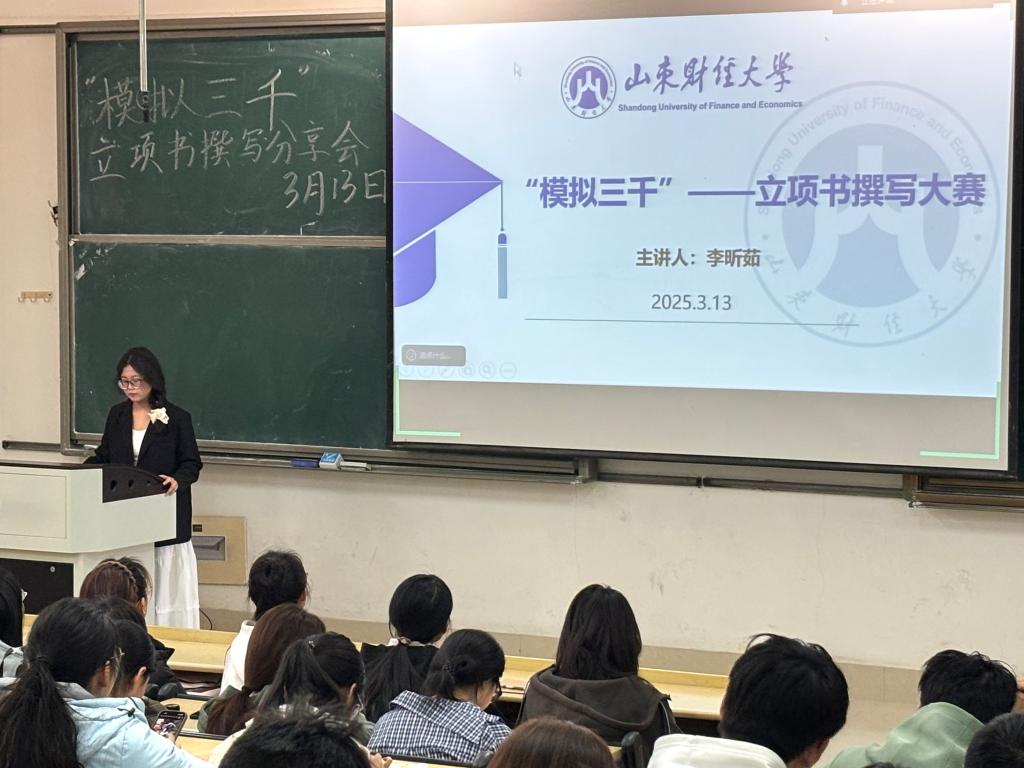 3月13日,太阳网集团tcy8722在章丘校区举办了“模拟三千”——立项书撰写分享会。校社会实践中心副部长、院学生会科创竞赛部副部长相昕杉和大学生青年发展与实创中心实践工作处副部长李昕茹担任主讲人。2024级学生积极参加分享会。