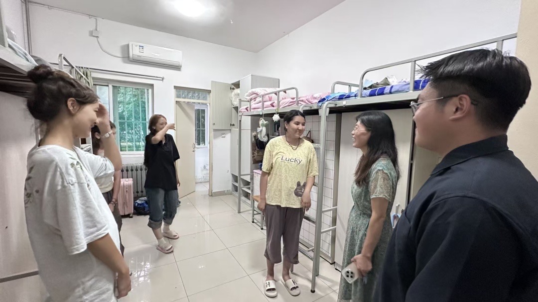 辅导员进宿舍活动开展,进一步拉近了新生与辅导员的距离,加深了彼此间的联系。辅导员们走进新生宿舍,与新生们促膝长谈。她们不仅细致地讲解宿舍设施的使用方法、校园水电缴费等生活细节,还热情分享自己的学习经验与校园生活感悟,让新生们在温馨的宿舍环境中,切实感受到学校的关怀。