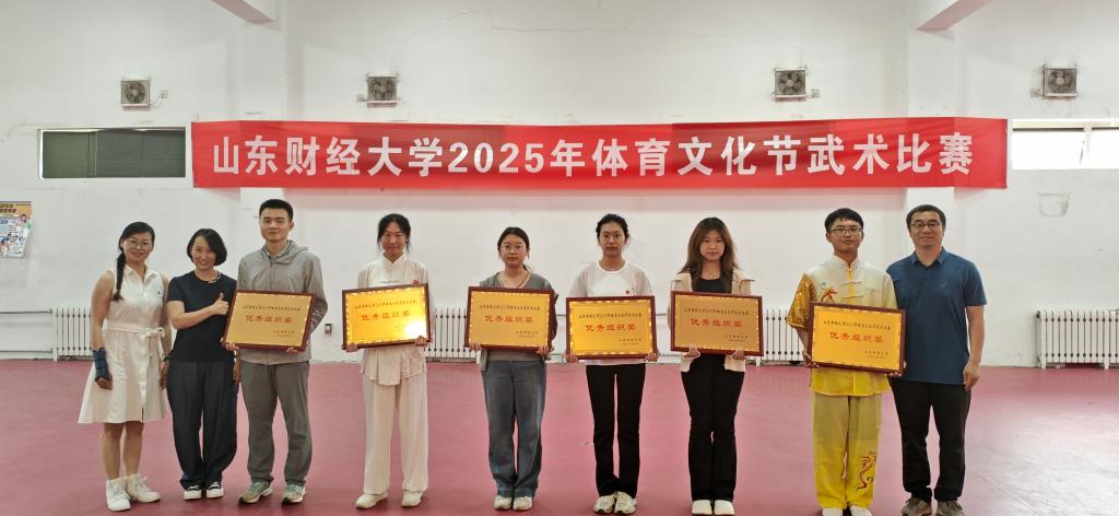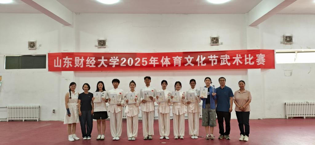 本次比赛吸引了全校15个学院、近200名选手同场竞技。我院参赛队员们身着传统武术服,精神饱满、气宇轩昂。他们首先以刚劲有力的长拳开场,出拳迅猛、踢腿生风,动作行云流水间展现出"静如处子,动如脱兔"的爆发力;紧接其后的太极拳表演,动作舒缓柔和、流畅连贯,完美诠释了以柔克刚的武学精髓。这一刚一柔的完美演绎,既展现了武术的多元技艺,更让传统文化的神韵与武学哲思在动静转换间得到充分体现。最终,队员们凭借出色表现,斩获武术比赛第一名,学院获得“优秀组织奖”。