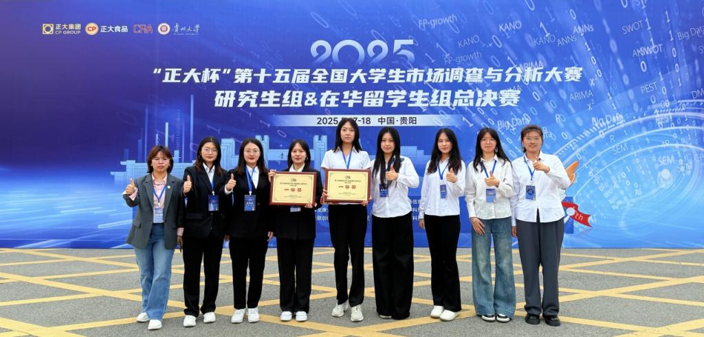 2025年5月17日至19日,“正大杯”第十五届全国大学生市场调查与分析大赛研究生组全国总决赛在贵州大学圆满落幕。经过激烈角逐,我院参赛队伍表现优异,斩获多项佳绩,实现历史性新突破。院长田金方教授、计量经济系副主任万道侠副教授带队参加研究生组全国总决赛。