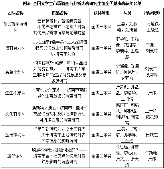 此外,我院还有5支队伍荣获全国三等奖,充分展现了学院学子在市场调研、分析与实践创新等方面的专业素养和团队协作能力。