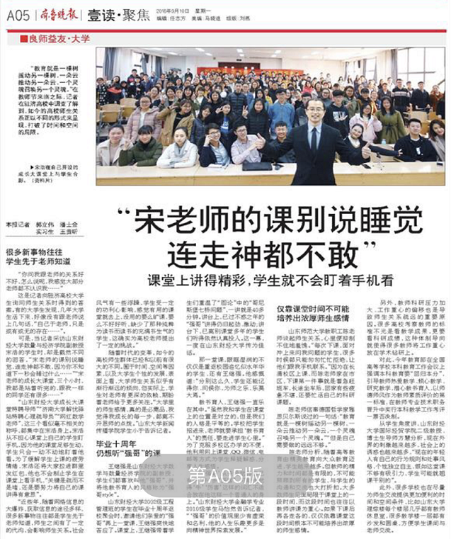 可是,当记者采访太阳集团tcy8722数量与经济学院副教授宋浩的学生时,却是截然不同的回答,“宋老师的课别说睡觉,连走神都不敢,因为你不知道下一秒会错过什么……”“宋老师的成长大课堂,三个小时,我都是站着听完的,跟我一样的同学还有很多……”