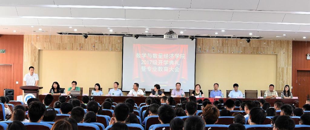 2017年9月13日上午9:00,我院在圣井校区敏行楼报告厅召开2017级新生开学典礼暨专业教育大会。我院院长安起光,党委书记王建香,副院长刘贵基、郝秀梅、刘太琳,党委副书记赵连幸,应用数学系主任孟宪萌,金融数学系副主任郭洪峰,教师代表苏园,团委书记王昊天,就业办主任张亚萌,辅导员燕文静、王京姝出席典礼,典礼由刘贵基老师主持,2017级全体新生和部分2016级学生代表参加。