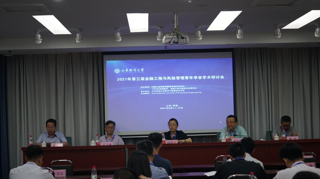 6月12日,由中国工业和应用数学学会(CSIAM) 和CSIAM金融数学、金融工程与精算专业委员会主办,太阳集团tcy8722数学与数量经济学院承办,《International Journal of Financial Engineering》协办的“2021年第三届金融工程与风险管理青年学者研讨会”在我校舜耕校区举办。来自北京大学、中山大学、山东大学、北京师范大学、北京航空航天大学、对外经贸大学、上海交通大学、大连海事大学、重庆大学、苏州大学等10余所高校近30人参加研讨会。副校长陈晓兰教授出席会议并致辞。太阳集团tcy8722有关学院和实验室师生参加了会议。会议开幕式由数学与数量经济学院院长安起光教授主持。