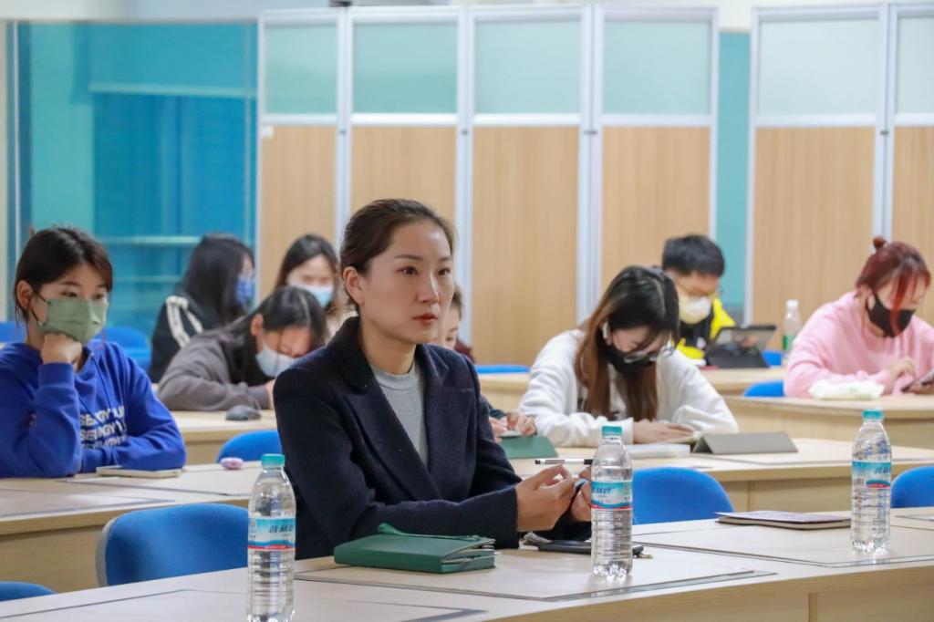 杨春晓处长介绍了我校国际交流与合作处的主要工作内容,并向同学们讲述了与我校建立交流合作关系的多所海外友好院校,鼓励大家做好学业规划,利用好学校各项国际教育资源。