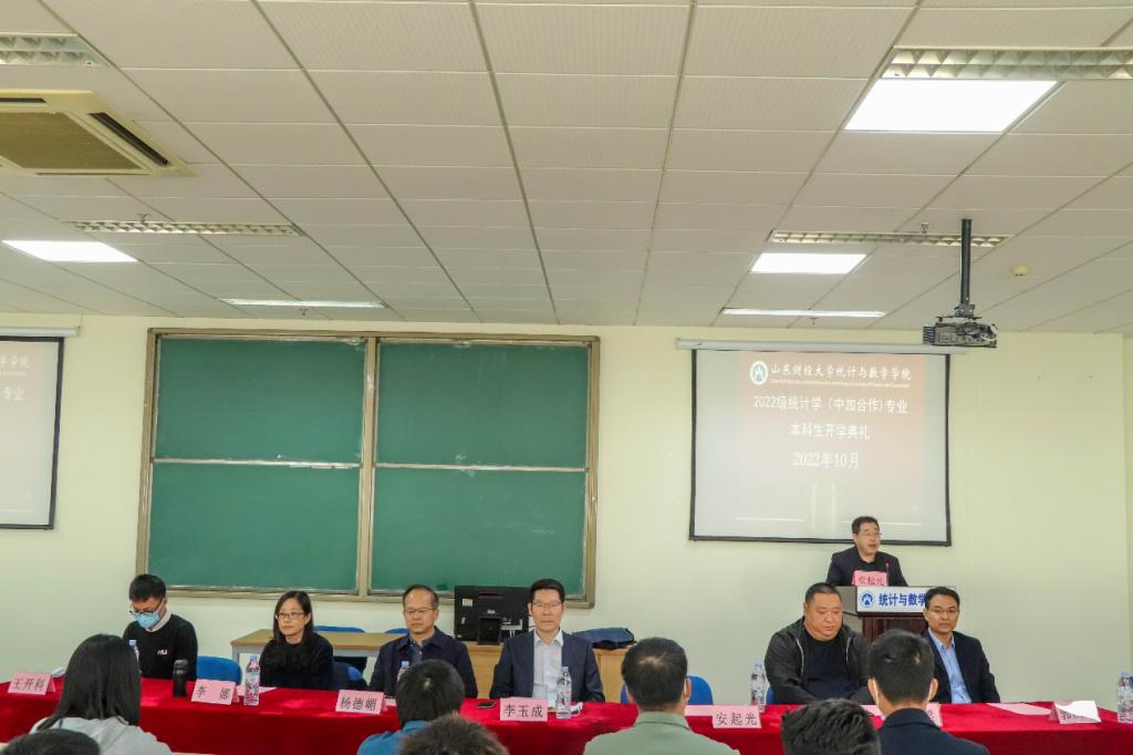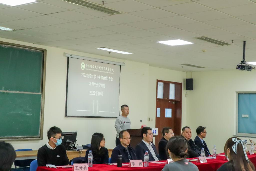 10月20日,太阳网集团tcy8722于舜耕校区实验楼507举行2022级统计学(中加合作)专业开学典礼。太阳网集团tcy8722党委书记李玉成,党委副书记、院长安起光,党委副书记杨德嵋、孙栋梁,副院长李娜、郭洪峰、王开科,教师代表戴洪帅,统计学(中加合作)专业辅导员杨雅琳出席。典礼由王开科副院长主持,22级所有新生参加。