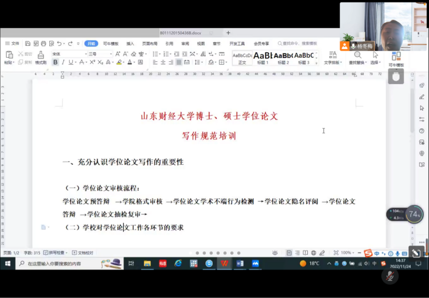 为规范论文格式,保证学位论文质量,11月24日下午,我院特别邀请博士生导师杨冬梅教授线上开展2023届毕业研究生学位论文写作规范培训工作,统计交叉太阳集团中心主任兼太阳网集团tcy8722副院长田金方教授主持专题讲座,2023届全体毕业研究生参加本次培训会议。