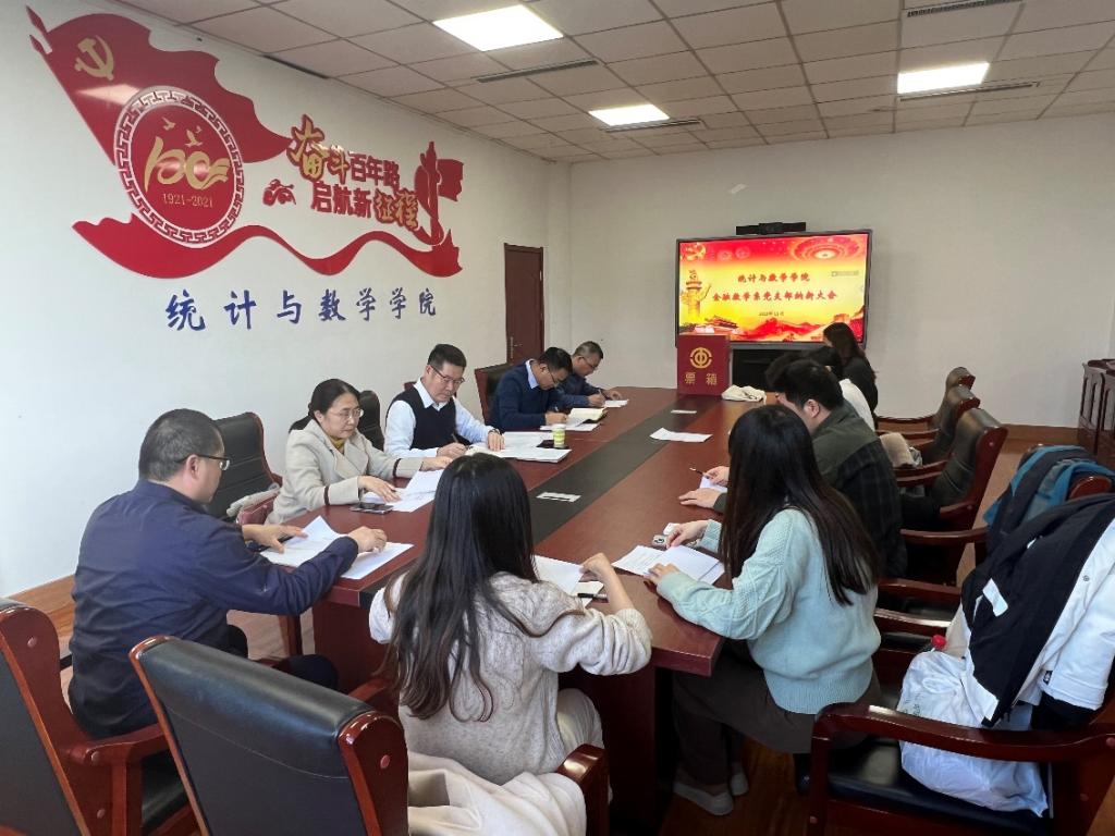 李玉成在表达对新入党同志热烈祝贺的同时,勉励其要牢记初心使命,铭记入党誓言,强化党性锻炼,提高素质能力,坚持立德树人,立志为党的教育事业贡献自己的智慧力量。在与大家深入交流过程中,他充分肯定了近年来金融数学系党支部作为山东省先进基层党组织、学校党建样板支部所取得的优异成绩,感谢全体支部成员一年来在促融合、谋发展过程中所表现出的良好大局意识,尤其是青年党员、青年教师在去年的关键时候能够舍小家、顾大家,经受住了考验,赢得了赞誉,展现了风采。他强调,当前学院正处在快速发展的关键时期,如何促进党建与业务工作深度融合、推进学院高质量发展是摆在每一位同志面前都应该深入思考的问题,特别是要结合新一轮本科教育教学评估各项要求,坚持以评促建、以评促改,自觉发挥好先锋模范带头作用,以实际行动推动学院中心工作再上新台阶。他指出,博士点的核验通过、博士后流动站的设立,为大家搭建了干事创业更高舞台。他希望系支委会要结合中心工作,认真贯彻落实《关于加强新形势下高校教师党支部建设的意见》要求,着力把党支部建设成为新时代高校党建和业务双融合、双促进的坚强战斗堡垒,切实提高教师党支部做思想政治工作能力,有效突出政治功能,牢固树立意识形态工作主阵地意识,积极引导党员、教师切实增强 “四个意识”,坚定“四个自信”,做到“两个维护”,深刻领悟“两个确立”的决定性意义,切实解决好“育人者先育己”问题,继续深化课程思政建设,紧紧围绕立德树人这一根本任务,自觉担负起新时代“传道、授业、解惑”光荣使命,为加快“双一流”建设、推动内涵式发展提供坚强的组织保证。