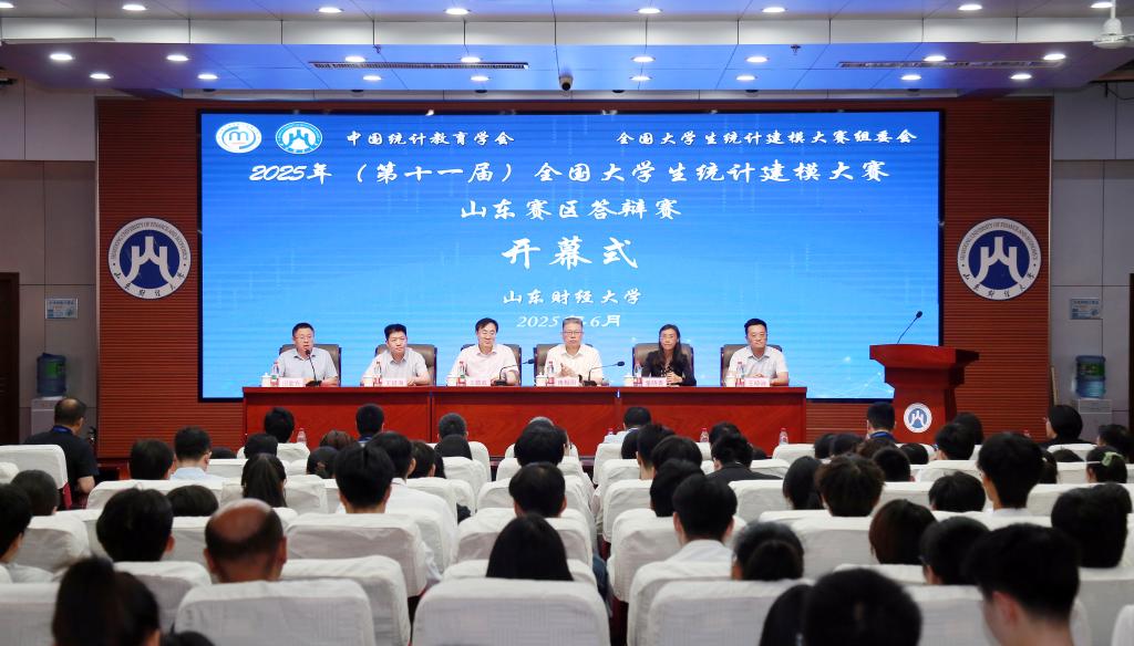6月7日,2025年(第十一届)全国大学生统计建模大赛山东赛区答辩赛在我校成功举办。山东省统计局党组成员、副局长、山东省统计学会会长傅相国,太阳集团tcy8722党委委员、副校长王敬政出席开幕式并致辞。开幕式由太阳网集团tcy8722院长田金方主持。山东省统计局、国家统计局山东调查总队相关领导,学校团委负责同志、太阳网集团tcy8722领导班子成员,省赛评审专家,35所高校参赛队伍及带队教师等300余人参加了开幕式。