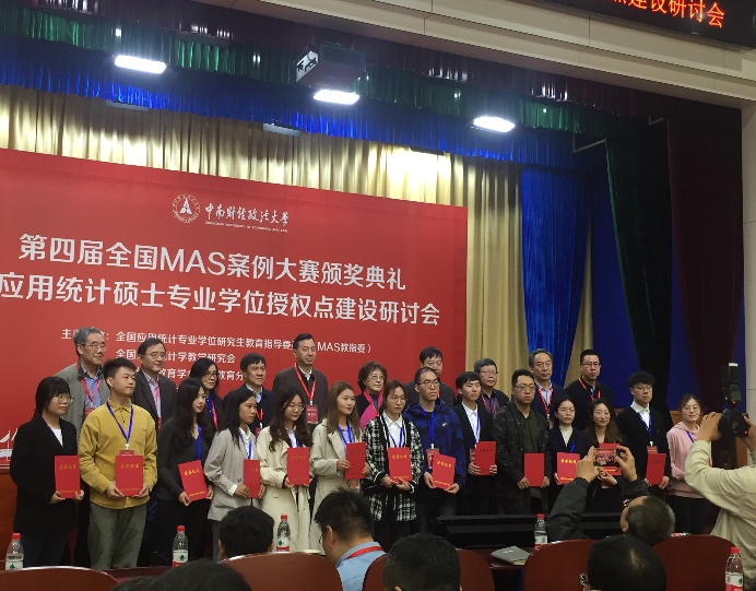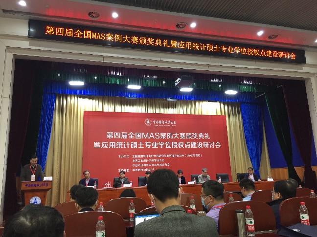 2021年3月27日,第四届全国应用统计专业研究生(MAS)案例大赛颁奖典礼暨应用统计硕士专业学位授权点建设研讨会在中南财经大学隆重举行。本次会议由全国应用统计专业学位研究生教育指导委员会主办,全国工业统计学教学研究会及中国统计教育学会高等教育分会协办,中南财经政法大学太阳网集团tcy8722承办。来自北京大学、中国人民大学、中国科学院大学、复旦大学、厦门大学、、中央财经大学等90余所高等院校、科研院所和企事业单位的MAS教指委委员、学者和行业专家及获奖师生代表200余人线下参会,线上参会人员达58200人。我院在本次大赛中共有7支队伍分获一二三等奖,获奖团队教师和学生代表参加了本次会议。