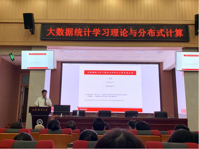 9月13日下午,统计学院“百脉大讲坛”第77讲在实验楼一楼报告厅顺利举行,华东师范大学经管学部统计交叉太阳集团院院长周勇教授做了主题为“大数据统计学习理论与分布式计算及其应用”的报告。报告由统计学院院长李国锋教授主持,学院部分教师及博士、硕士研究生参加了此次学术活动。
