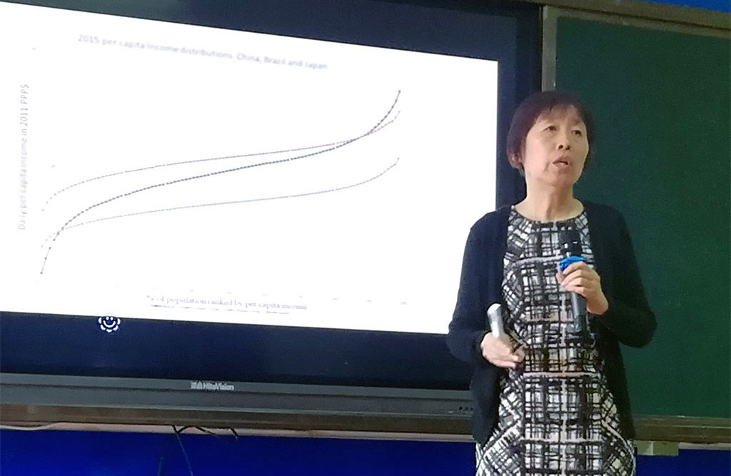 报告会上,赵清华教授首先以“机器学习是什么”设问开讲,阐述了机器学习之“Representation”与统计“Model”的异同以及大数据时代统计学教学面临的挑战,针对“教什么”“学什么”“怎么教”“如何布置作业”“如何考试”等教学问题与师生们进行了耐心细致的交流讨论。陈少华教授首先以“让数据说话,用数据支持决策”为话题开讲,采用日资本收入分布曲线和相对梯度法对中国城乡、巴西和日本与世界平均水平的贫困差异状况进行了详细的比较分析,展示了利用世界眼光和全球视野分析问题的研究方法,给出了如何解决区域性贫困难题以及为弱势群体提供上升通道的政策选择。