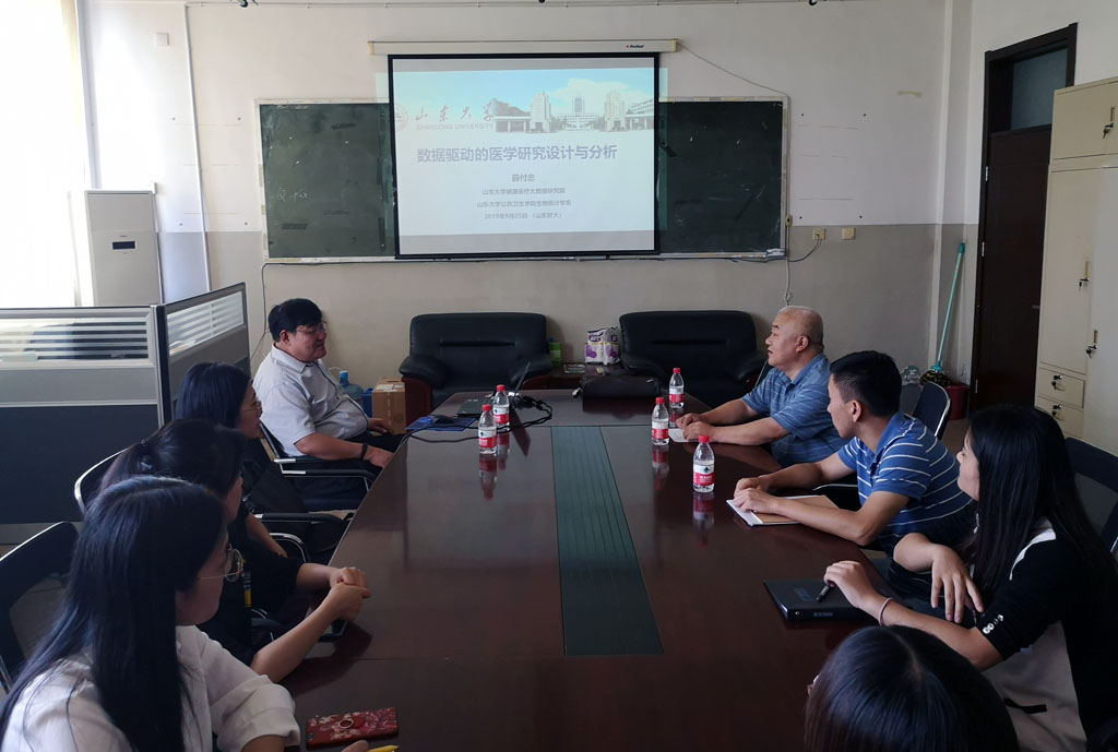 2019年9月25日下午,“百脉大讲坛”(第56讲)在燕山校区1号教学楼统计学院举行,山东大学薛付忠教授以“数据驱动的医学研究设计与分析”为主题,为统计学院部分老师及硕士、博士研究生们做了异常精彩的报告。讲座由执行院长李国锋教授主持。