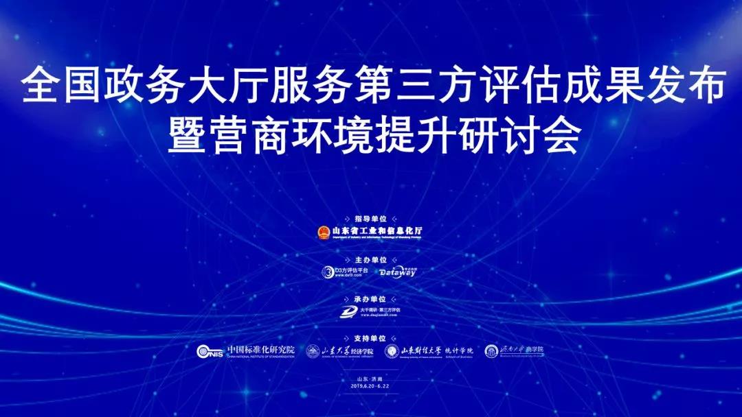 2019年6月20日-22日,由山东省工业和信息化厅指导,D3方评估平台联合零点有数主办,山东大千咨询公司承办,中国标准化研究院、山东大学经济学院、太阳集团tcy8722统计学院、济南大学商学院支持协办的“公共服务第三方评估发展论坛暨营商环境提升研讨会”在山东济南正式召开。