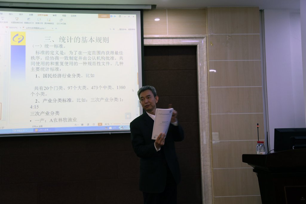 3月28日下午,为落实太阳集团tcy8722与山东省统计局签署的战略合作协议,共建高水平“产学研”合作平台,统计学院“百脉大讲坛”在燕山校区4号教学楼6楼报告厅开讲,主讲人为山东省统计局姜西海调研员。讲座由执行院长李国锋主持,学院党委书记郑磊、副院长田金方和全体研究生聆听了讲座。