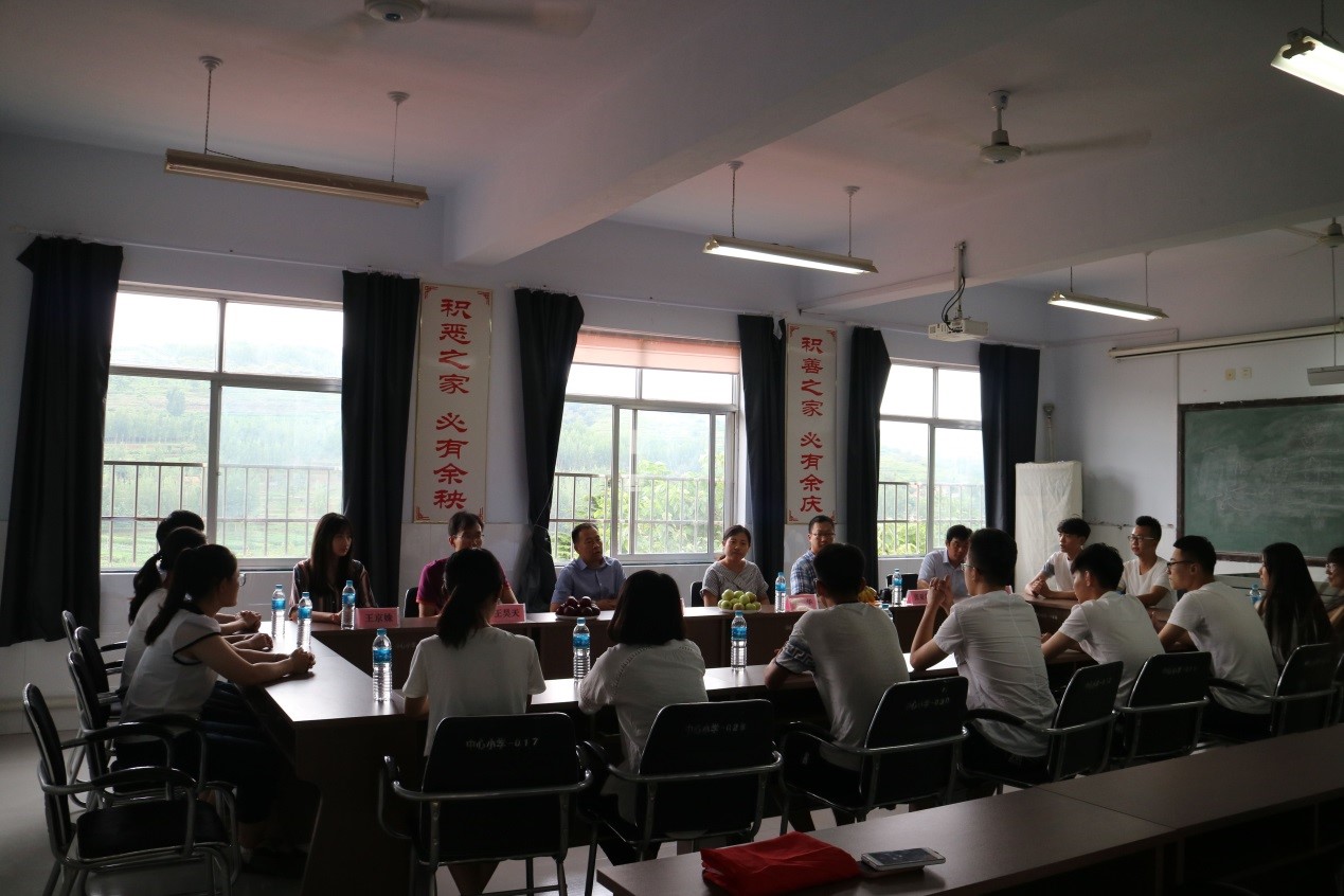 首先,于华委员发表讲话,对我院支教团队的到来表示热烈欢迎。南鲁山镇与市里虽然相距仅仅半小时车程,但是由于地域环境的限制,当地学生与外界接触的机会很少,甚至有不少学生没有走出过县城,所以于华委员希望,支教团队给他们带来的不仅是书本上系统的知识,更让他们有机会接触到山村外的知识和信息。同时希望团队成员给他们树立良好的榜样。最后,于华委员对支教活动的圆满完成表示深切祝愿。