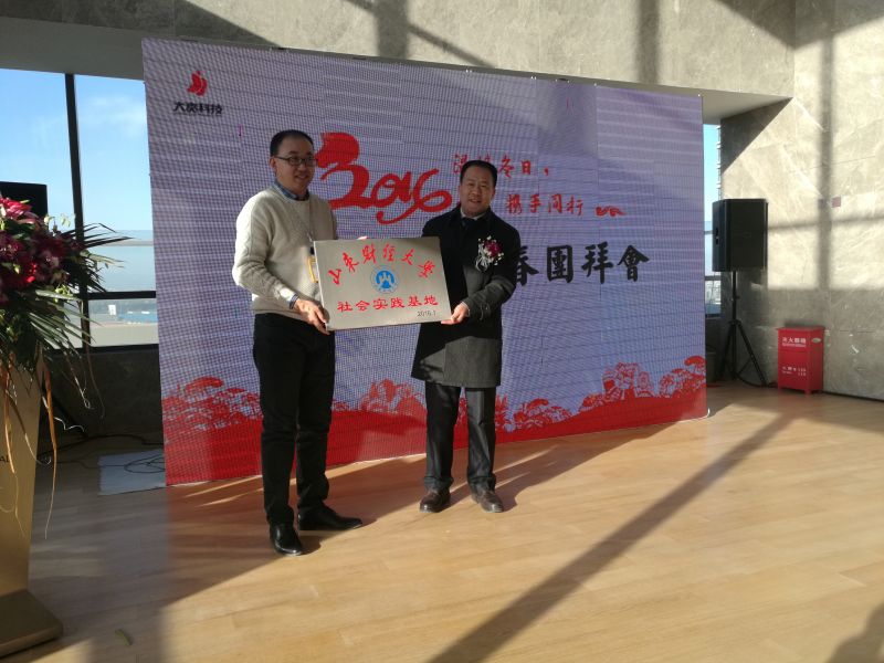 寒假期间,我院在北京大贲科技有限公司举行社会实践基地揭牌仪式,党委副书记赵连幸,就业办主任张亚萌,教师代表周锋波参加了活动。