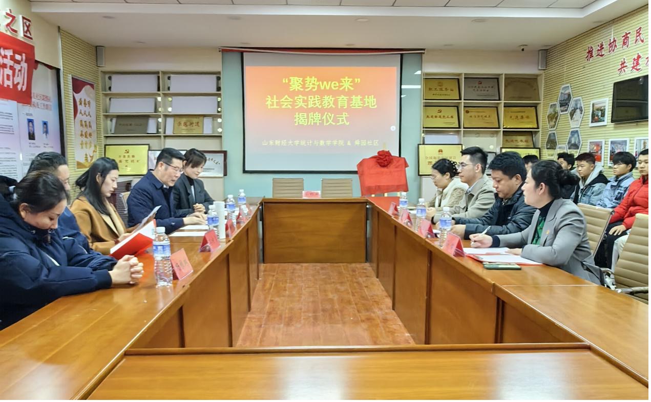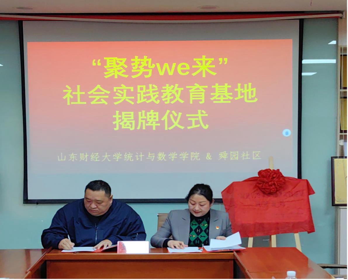 11月13日下午3点,根据共青团山东省委、山东省教育厅《关于开展“百万大学生进社区”社会实践的工作方案》部署要求,太阳集团tcy8722统数学院与舜玉路街道舜园社区“聚势We来”共建结对社会实践活动揭牌仪式在舜玉路街道舜园社区一楼会议室隆重举行。团市中区委副书记(挂职)王豪,舜玉路街道党工委副书记、总工会主席刘恒溪,舜玉路街道团委副书记翟羽佳,舜玉路街道舜园社区综合党委书记、居委会主任孙怡,太阳集团tcy8722团委副书记邢夏子,太阳网集团tcy8722党委书记李玉成、党委副书记孙栋梁,学院团委书记张秀萍、心理中心主任杨雅琳及部分学生代表出席了本次启动仪式。